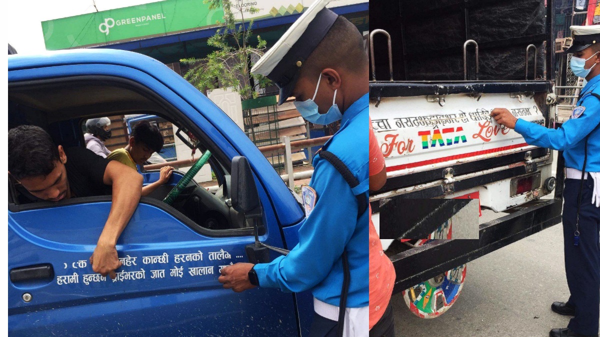 सवारी साधनमा सायरी र गजल लेख्न नपाइने ट्राफिकले च्यात्न थाले स्टिकर