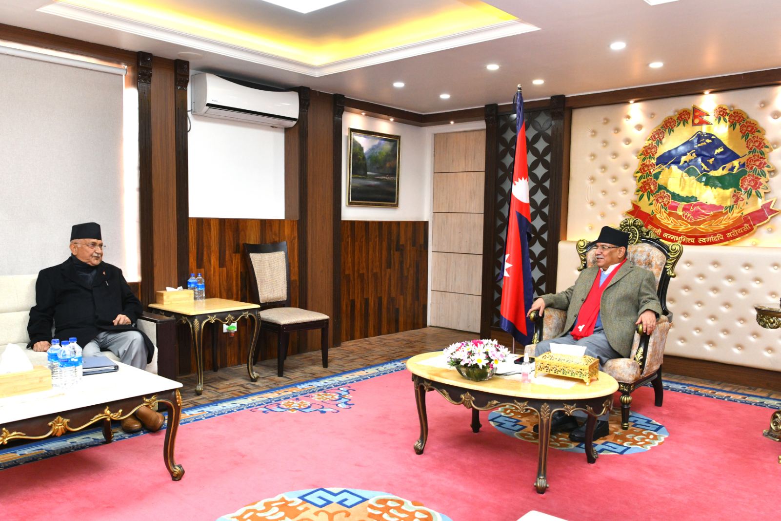 राष्ट्रपति निर्वाचनको उम्मेदवारबारे प्रधानमन्त्री प्रचण्ड र एमाले अध्यक्ष ओली बिच बालुवाटारमा छलफल