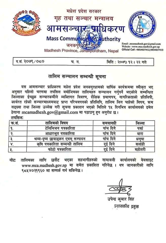 दलिय चिन्तन तथा नेताकाे भजन मन्डलिकाे बारम्बार आरोप खेपि रहेका मिडिया प्राधिकरणको गलत निर्णय तत्कालै सच्याउन राैतहटका पत्रकारहरुले सम्बन्धित पक्षसंग अनुराेध गरेका छन । काेभिड१९ मा मधेस प्रदेश भरीमा राैतहटका दुई जना पत्रकार मनोज चाैधरी र रामा देवी यादवको मृत्यु हुदा आम सञ्चार प्राधिकरण तथा मधेश सरकारले चरम वेवास्ता गरेका थिए । नेपाल पत्रकार महासंघ रौतहटका पदाधिकारी तथा पिडित पक्षले स्वयं पटक पटक आग्रह अनुनय विनय गर्दा समेत नसुन्ने आमसञ्चार प्राधिकरण कुन नियतले निर्वाचन आचारसंहिता लागेको बेलामा यस्ता विभेदकारी सुचना प्रकाशन गरेका छन । राैतहट जिल्लालाई कुनै कार्यक्रममा नपारी विभेद नगरी के संदेश दिन खाेज्दै छन ।